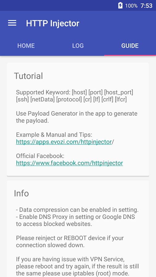 HTTP Injector bisa berperan sebagai Proxy Server versi Android/Mobile,Bisa Inject HTTP Header, dan Inject Proxy dengan kemampuan Memodifikasi HTTP Request agar Response dari HTTP sesuai yang diinginkan dan bisa digunakan untuk Mengakses Website yang diblokir dari Firewall , serta support SSH.
