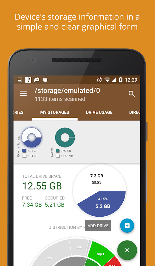 Disk & Storage Analyzer berguna untuk menganalisa, memeriksa, dan melaporkan informasi pada Memori Internal, Kartu Memori, maupun Memori eksternal yang terkoneksi dengan perangkat Android kita. Disk & Storage Analyzer menampilkan informasi secara sederhana dan dengan grafik jelas sehingga memudahkan pengguna untuk memahami kondisi dari suatu Memori.