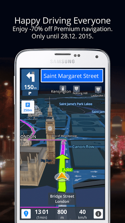 Sygic GPS Navigation & Maps adalah aplikasi GPS offline yang paling banyak diinstall saat ini, dibuat oleh TomTom Maps aplikasi ini terinstall di SD Card jadi tidak memerlukan koneksi Internet untuk menggunakannya. Pengguna dapat menikmati navigasi gratis, gps, peta offline, POIs, rute jalan, dan akan mendapatkan update Peta secara gratis. Untuk mendapatkan fitur terbaik kita bisa mengupgrade Sygic GPS Navigation & Maps ke versi Premium dan akan mendapatkan fitur 3D Maps, Real-time turn-by-turn voice-guided navigation, lande guidance, speed limit warnings dan junction view dengan indikator.